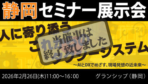 セミナー2026年1月8日静岡でのセミナー・展示会の開催情報を掲載しましたので、お知らせ致します。